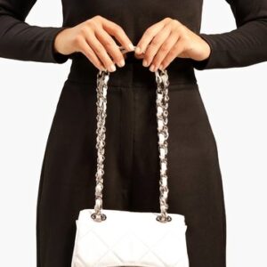 Bolsa tiracolo média de couro branca com contorno preto design estruturado, costura matelassê e alça em corrente com detalhes em couro. Sofisticada, moderna e versátil para qualquer look.