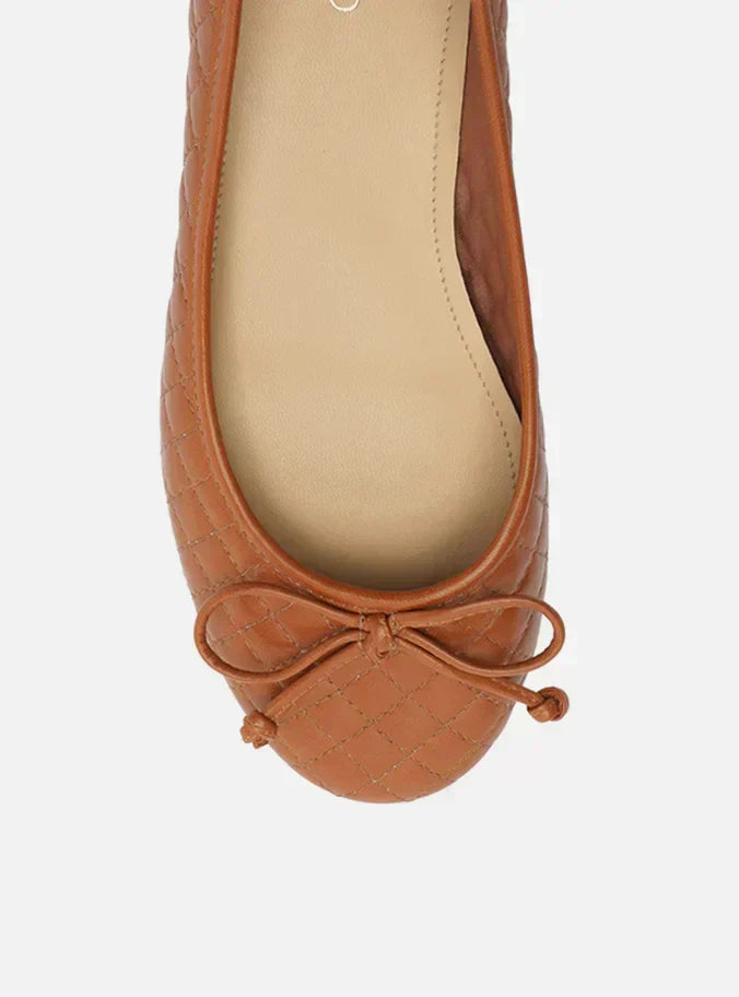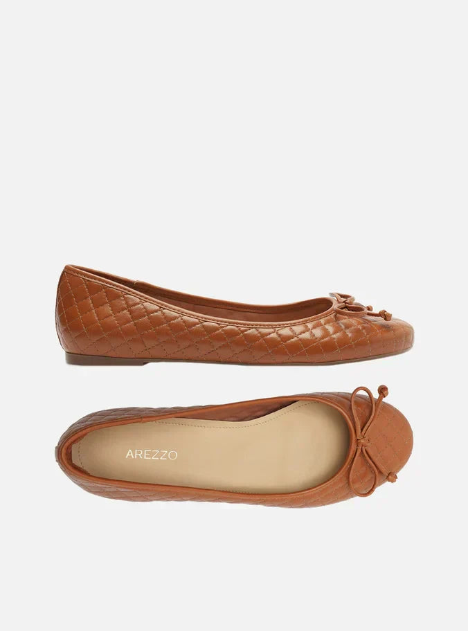 Sapatilha Marrom Matelassê Bico Redondo Laço