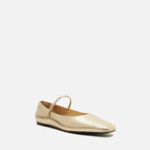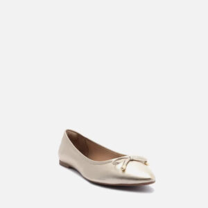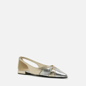 Sapatilha Dourada Couro Bico Fino Vazada Bicolor