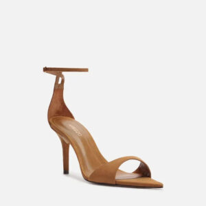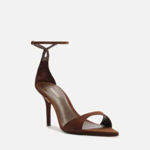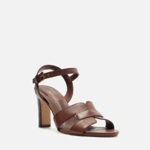 Sandália Marrom Escuro Camurça Salto Médio Tiras