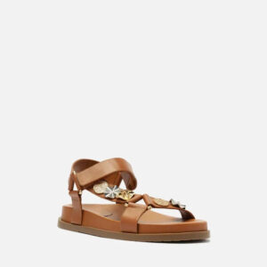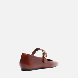 Sapatilha Caramelo Couro Bico Quadrado Fivela