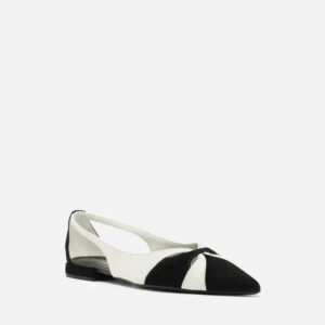 Sapatilha Branca Couro Bico Fino Vazada Bicolor