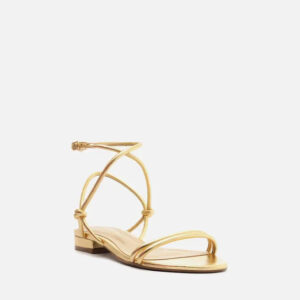 Sandália Metalizada Tiras Bombadas Salto Bloco