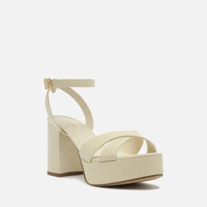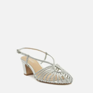 Sandália Prata Salto Bloco Tiras Trançadas Gota