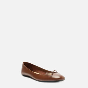 Sapatilha Marrom Couro Bico Redondo Lacinho
