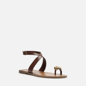 Sandália Rasteira Marrom Slim Tiras Trançadas